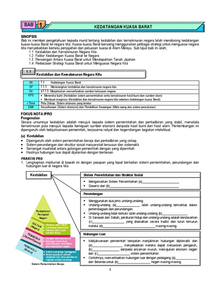 Nota Bab 1 Kedatangan Kuasa Barat 1 1 Kestabilan Dan Kemakmuran Negara Kita Pdf